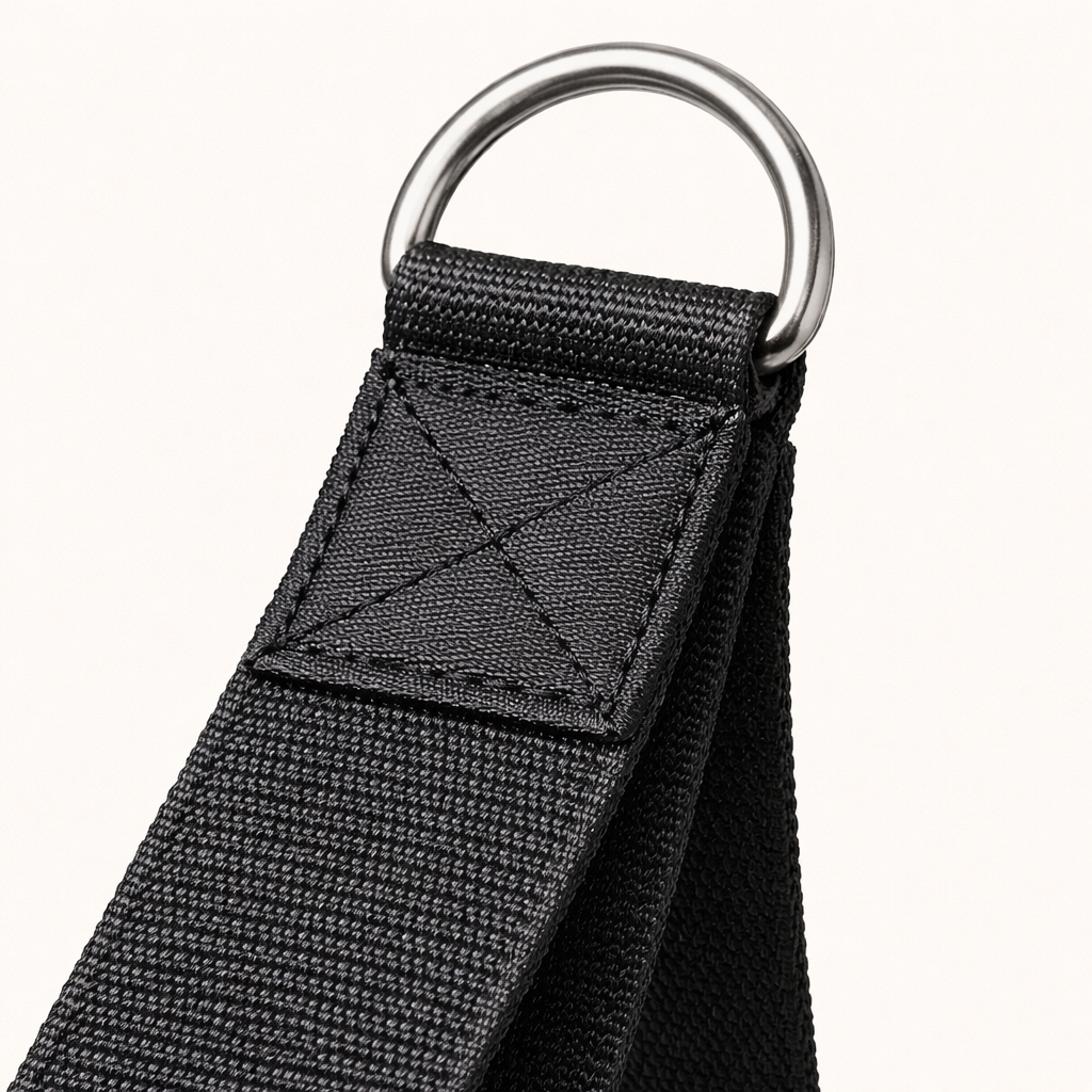 Material: Heavy-duty nylon webbing, rubberized padding, steel D-ring